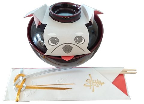 戌年にちなんで作成したお碗の蓋に取り付ける紙製の飾りのページです。